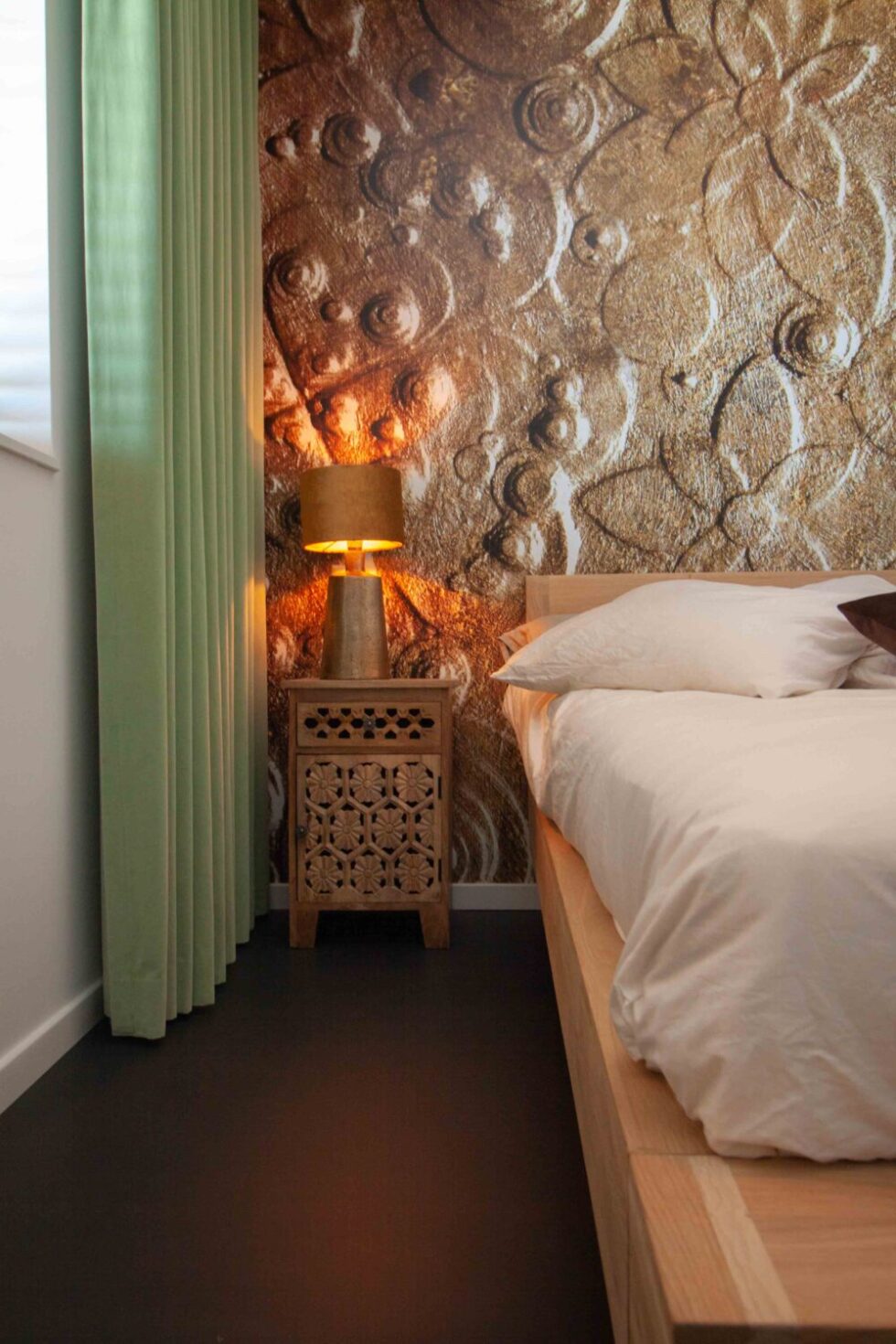 "Die Zimmer in der Wohnung haben alle ein eigenes Thema. Natürliche Materialien und Farben sind der gemeinsame Nenner in diesen Räumen. Auch die verschiedenen Stile lassen sich nicht in eine Schublade stecken. Raue Holzmöbel wechseln sich zum Beispiel mit einem runden, weichen Ecksofa ab. Für mich ist es ein Mix und Match, bei dem die Farbe das Match bestimmt", fügt Ageeth hinzu.