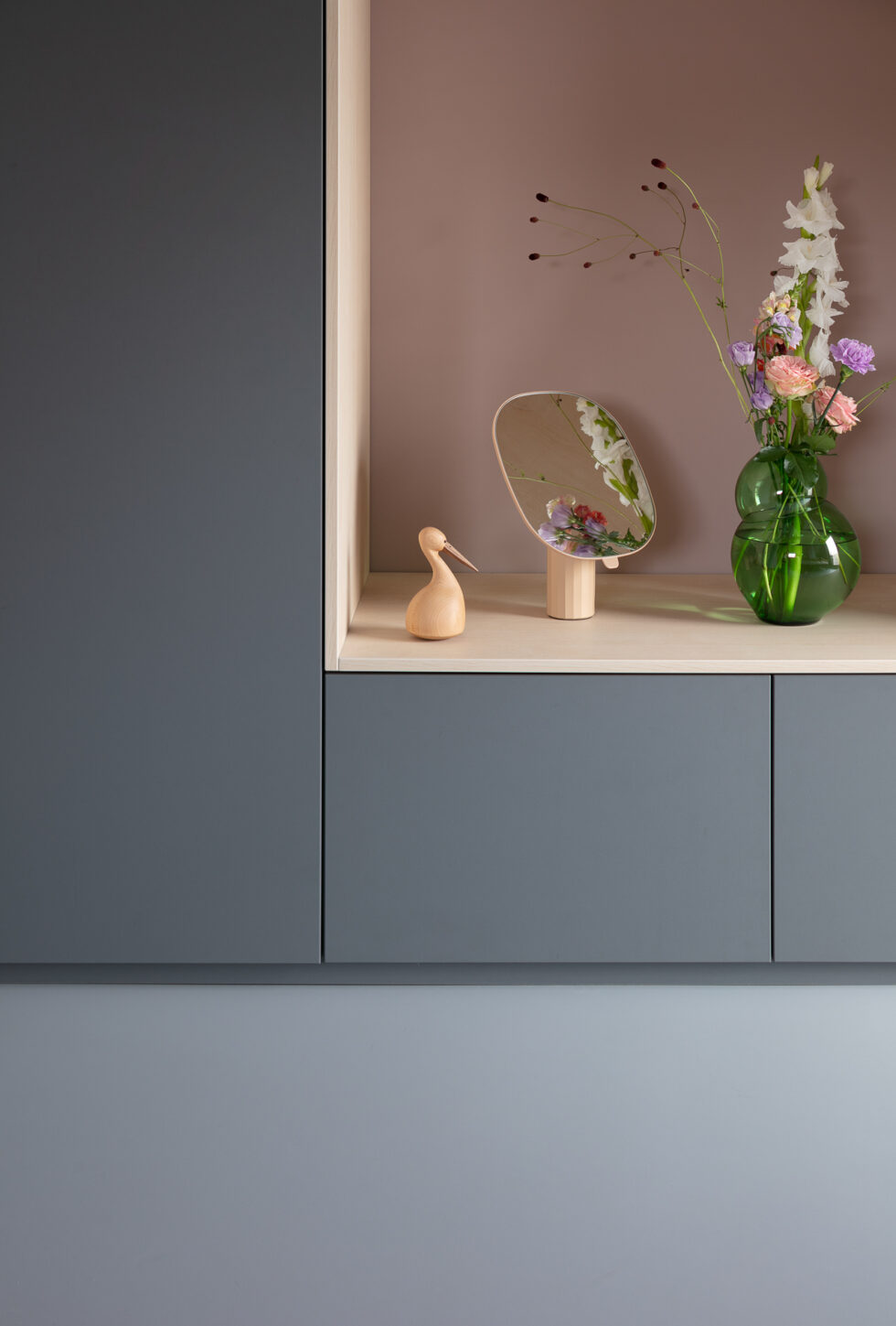Stijn and Fleur chose a blush color in the living room, Grey Light. “Our previous floor had a uni color,” Stijn explains. “We chose that one when there were just two of us. Now we have three kids and a blend is a bit more practical. The nice thing about a blend floor is that the applicator comes and mixes it on the spot. So you can determine the intensity of the “sweep” yourself. By the way, this floor is also a shade lighter than the previous one. We have a very light house and this floor matches that perfectly.”