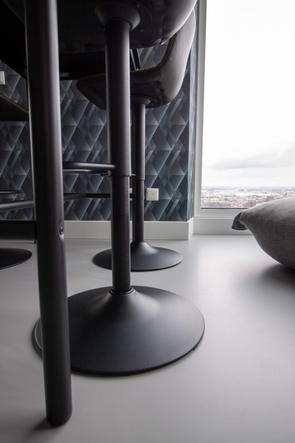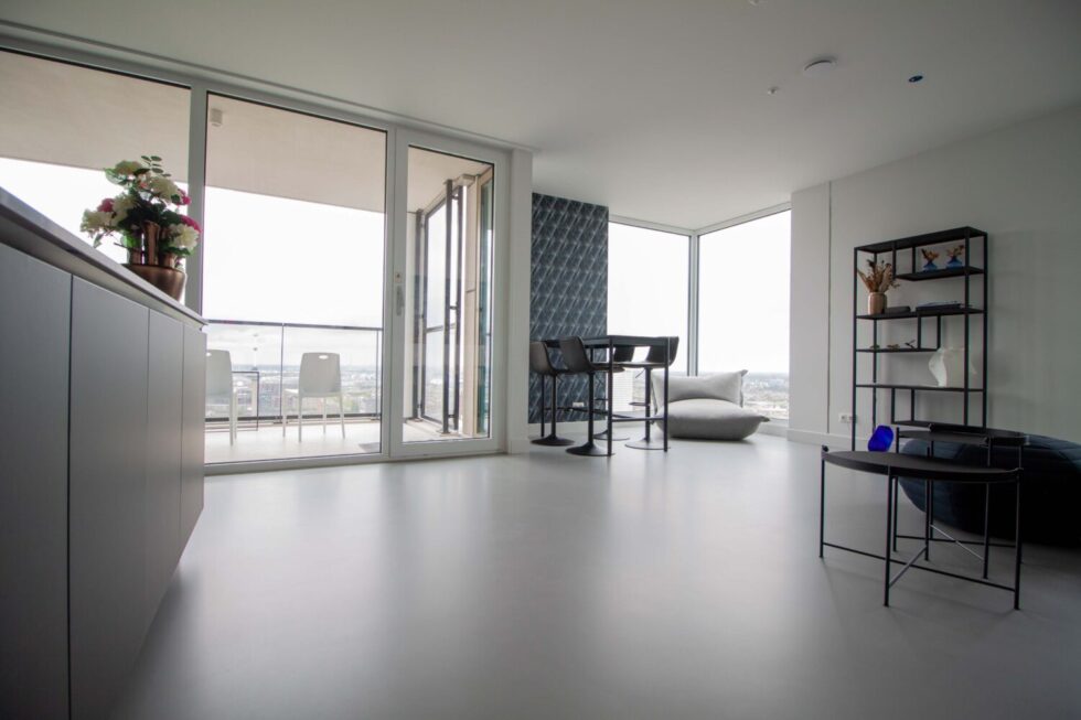 De Zalmhaventoren in het Scheepskwartier in Rotterdam is met haar 215m de hoogste woontoren van Nederland. Bovenin de woontoren wonen Sabien en haar gezin met veel plezier. Zij hebben de vloer als uitgangspunt gebruikt bij de keuze voor hun inrichting. Belangrijk waren de strakke en slijtvaste kenmerken. In deze blog motiveren ze de keuzes voor hun vloer en interieur.