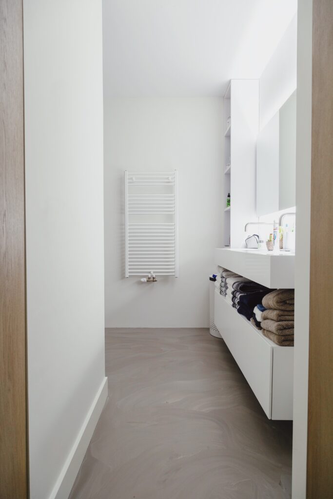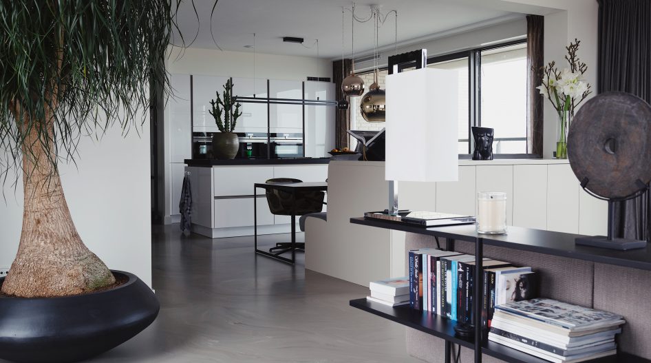 Olga is bovendien blij dat ze de vloer door heeft laten lopen in de andere kamers en zelfs in de kasten. “Omdat de vloer overal is aangebracht, hebben we nergens storende naden of drempels. De vloer is eenvoudig schoon te maken en gemakkelijk te onderhouden. Ik zou zo weer kiezen voor een gietvloer ven EPI! Het is een gigantisch mooie en handige vloer en de combinatie met vloerverwarming maakt de vloer extra behaaglijk en comfortabel.”