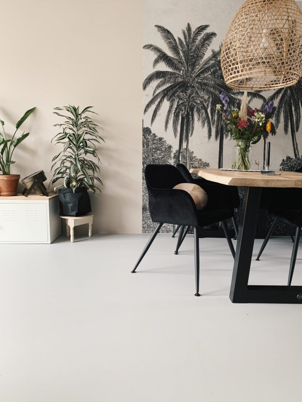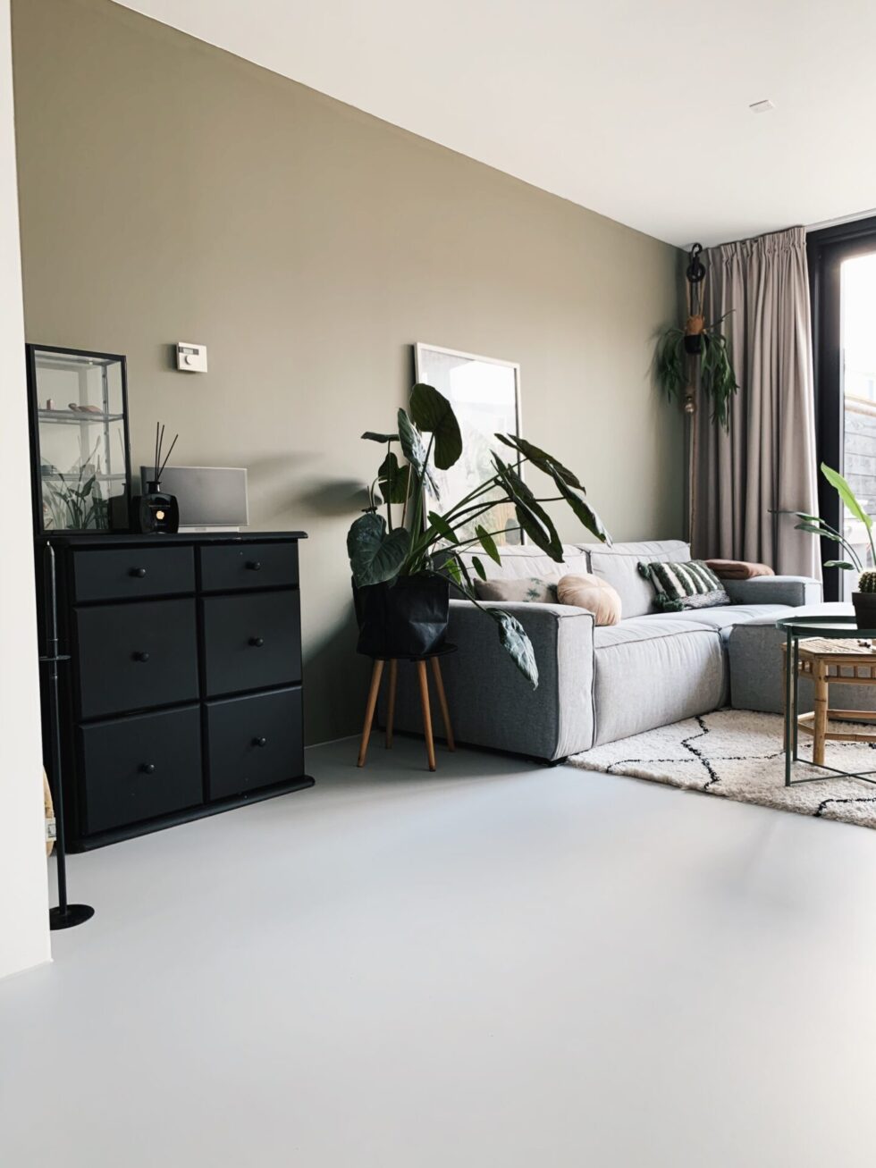 Sven en Lynn kozen voor de kleur Vagabond, een effen licht grijze kleur. Deze hebben ze laten aanbrengen op de begane grond en in de badkamer. Wat ze tot nu toe fijn vinden aan de vloer is de uitstraling, dat hij hygiënisch is omdat je geen naden en voegen hebt en bovenal comfortabel aanvoelt doordat hij de vloerverwarming goed geleidt.